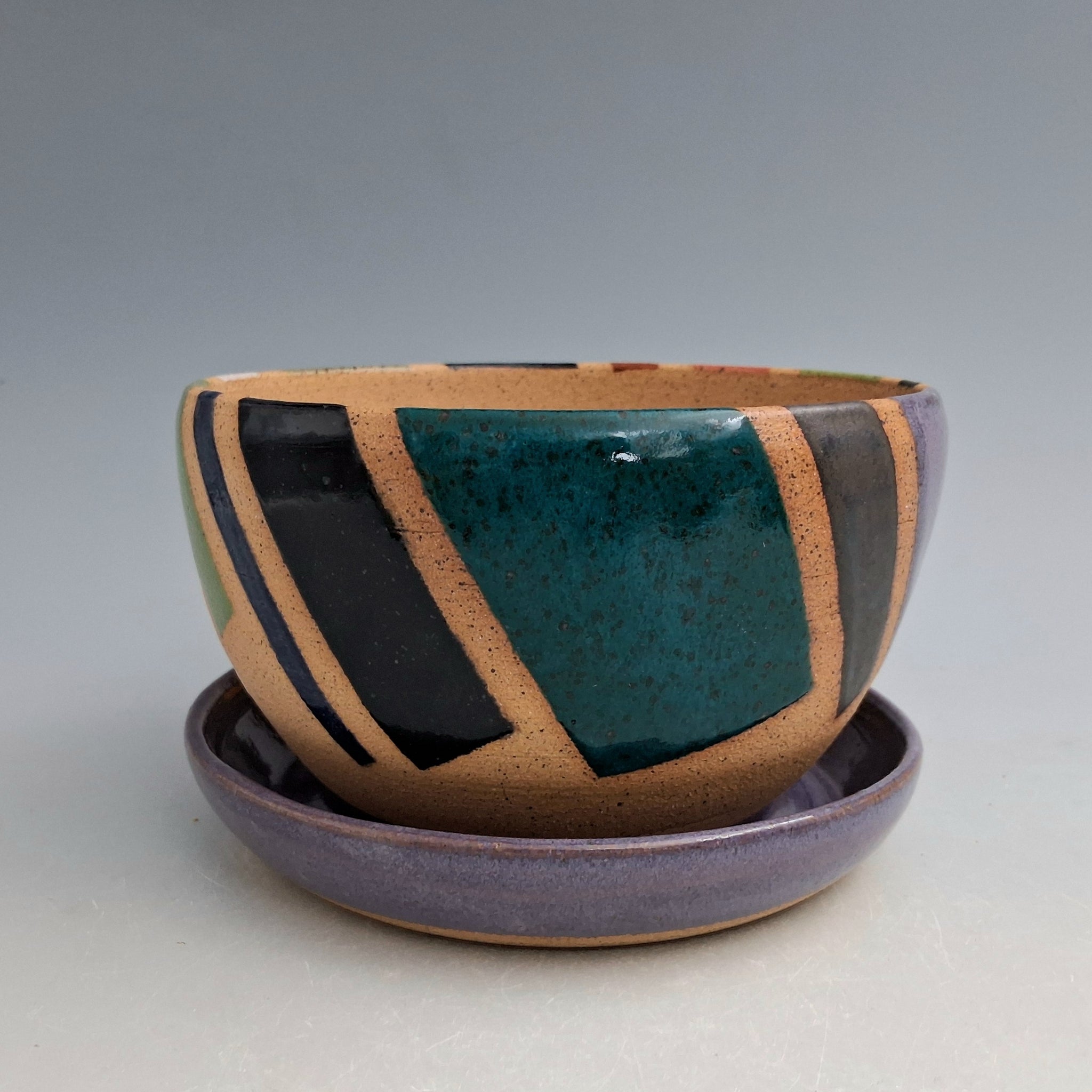 Plants brighten any living or working space. The unglazed speckled clay has an organic vibe, yet the geometric glaze application adds pops of contrasting colors.