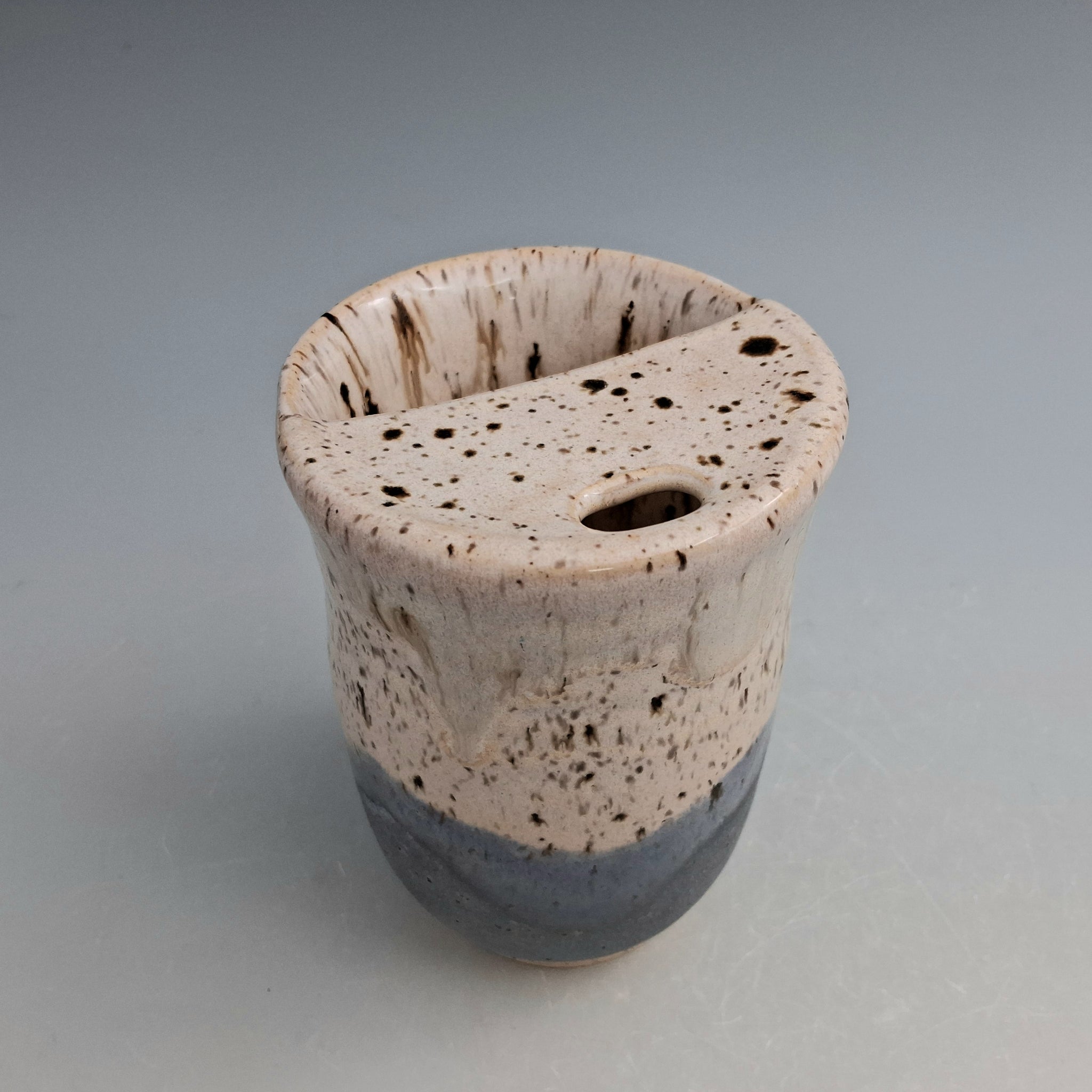 My first ever sippy mug! The glaze on this mug is speckled cream and blue.